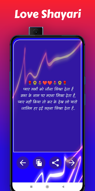 L'app Bewafa shayari ha molte funzionalità straordinarie che puoi facilmente utilizzarla senza Internet. Questa nuova app Sad Shayari Hindi ha le migliori categorie di hindi shayari come dard bhari shayari e Dhoka Shayari in hindi ecc.