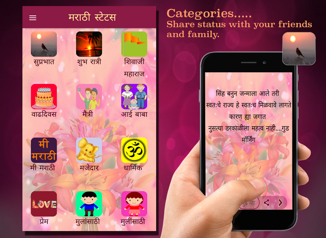 Marathi Stato (मराठी स्टेटस) L'applicazione è grande collezione di stato o il messaggio in lingua marathi.