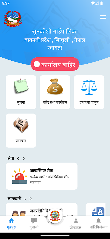 Questa applicazione fornisce le informazioni del comune rurale di Sunkoshi e dei suoi reparti.