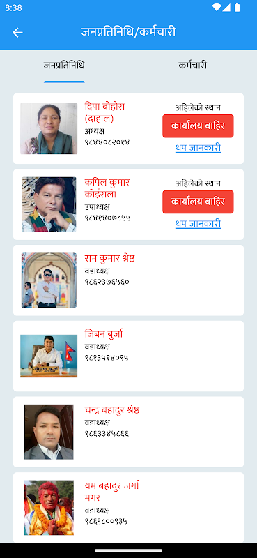 Stato di entrata/uscita: rimani aggiornato sulla presenza dei tuoi rappresentanti eletti, JanaPratinidhi, e dello staff dedicato, Karmachari, con aggiornamenti sullo stato in tempo reale.