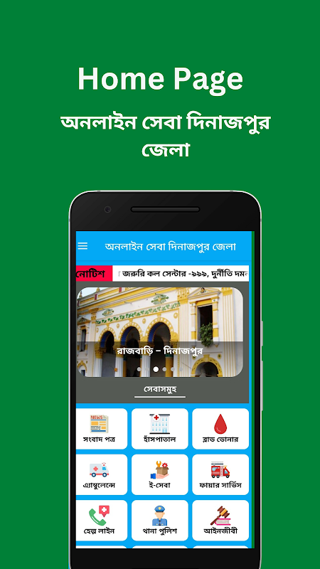 দিনাজপুর জেলা এবং দিনাজপুর জেলার সকল থানা এর মানুষের সেবার জন্য এটি একটি অসাধারন app, যাহা, ঘরে বসে সকল সেবা পাবেন পাবেন
