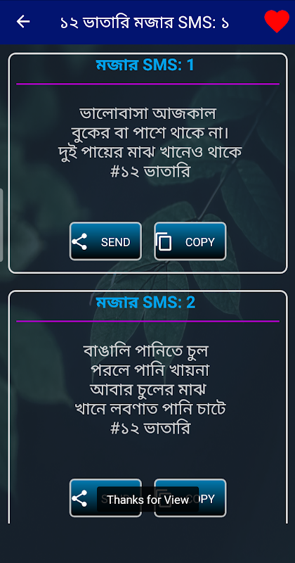 অন্যরকম মজার স্ট্যাটাস আর প্রেমের SMS নিয়ে অ্যাপসটি সাজানো হয়েছে।