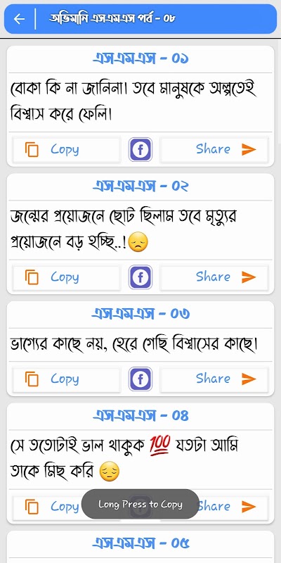 অভিমানি এস এম এস অ্যাপটিতে আপনি উপরে উল্লেখিত সকল প্রকার অভিমানের এস এম এস পাবেন। আশাকরি এই এস এম এস অ্যাপটি আপনাদের ভালো লাগবে বা আপনাদের মন ভালো করবে।