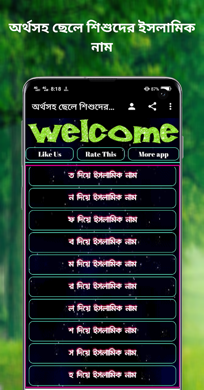 মুসলমানেরা শিশুদের নাম রাখার সময় চায় তার মেয়ে অথবা ছেলে শিশুটির নাম যেন ইসলামিক নাম হয় তাই আমরা অ্যাপটিতে ছেলেদের ইসলামিক নাম ও অর্থ সহ দিয়েছি আশা করি ইসলামিক নাম গুলো আপনাদের ভাল লাগবে । তাই আমাদের অ্যাপটি ডাউনলোড করে আপনার শিশুদের সুন্দর নাম খু্ঁজে বের করুন ।নেক সময় মেয়ে শিশুদের নামের অর্থ না জেনে রাখায় অনেক বিরম্বনার সৃষ্টি হয়। ছেলেদের ইসলামি নাম ও অর্থ বলতে বুঝায় আরবী নাম ও শব্দার্থ।শিশুদের ইসলামিক নাম ও অর্থ সহ নিয়ে আমাদের এবারের আয়োজন শিশুদের ইসলামি আধুনিক নাম ও অর্থ।নামের তালিকা ডাউনলোড করে নিন ছেলে শিশুদের খুঁজতে আপনাকে আমাদের এই অ্যাপটি সাহায্য করবে ।