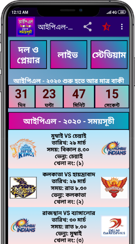 আইপিএল ২০২০ সময়সূচী - IPL 2020 Schedule 4.0