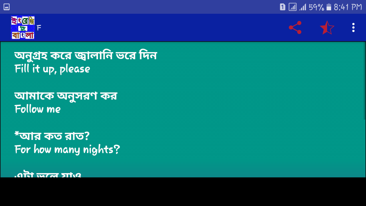 L'inglese è una internazionale ... Ogni giorno usiamo tanti parola in inglese ma abbiamo do't conoscere le meaning..its non mi fanno expart in english..so nostre applicazioni aiuterà a sapere in merito a Bangla all'inglese e dall'inglese al bangla. ..