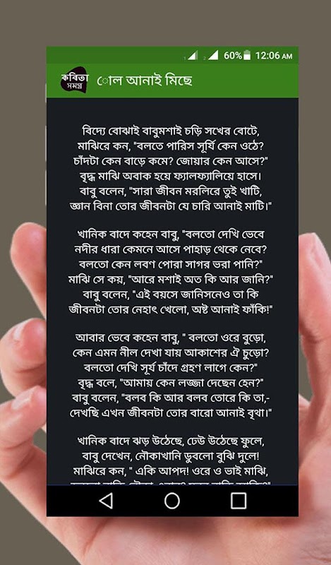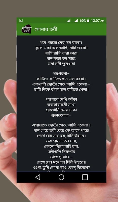 Number of people who love poems are numerous. Poetry and poetry have been practiced since ancient times, in the subcontinent. Come to you with many of the best poems from the poem's poems book. Hope you enjoy the app. Make your leisure time happy. Your childhood is forced to remember these poems. Much like to recite and listen to. For them, this app is a gift from us. Such as starting with Rabindranath.