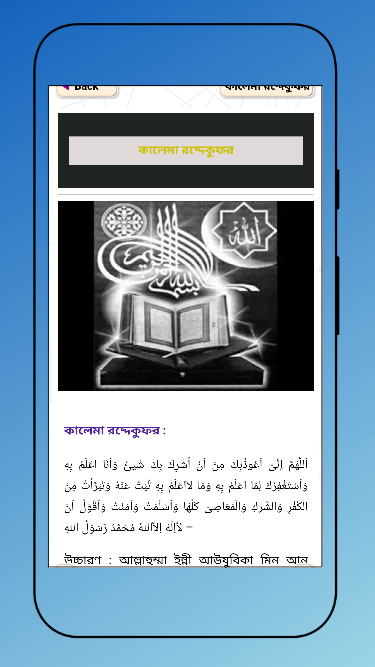 Kalima is one of the base of imaan. In this app you will get Kalima,kalima for kids,kalima and dua,kalima and dua application,kalima and dua bangla,kalima and dua app,4 kalma/4 kalima bangla/4 kalema,four kalma,five kalima/five kalma/5 kalima/5 kalima apps/5 kalima bangla/5 kalimas of islam/5 kalimas ,six kalma of islam/six kalma/six kalimas/six kalimas of islam.