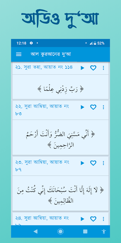 Una collezione unica di duas narrati nel Corano. Inclusa traduzione in bengalese, commento e audio