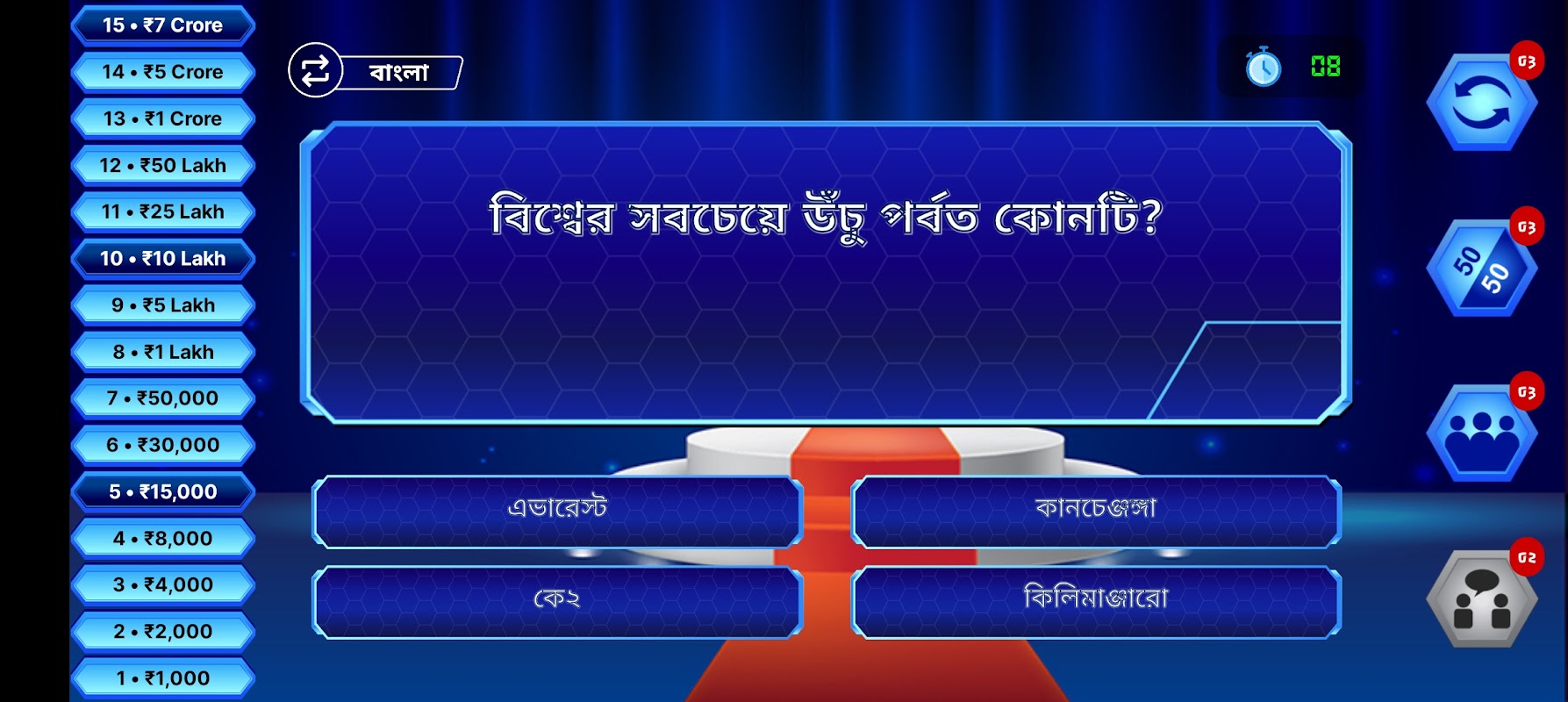 Questo gioco a quiz KBC contiene audio e grafica che danno una vera sensazione simile a un set KBC.