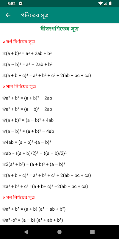 গণিত শিক্ষার জন্য যা যা সূত্র দরকার তা সব কিছৃ রয়েছে এই অ্যাপটিতে