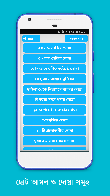 আমরা বাজারে বা লাইব্রেরীতে নানা ধরনের বই পাওয়া যায় যেমন : দোয়ার ভান্ডার ও ফজিলতছোট ছোট দোয়া আমলের বই জিকির, নামায শিক্ষা ও দোয়া সমূহ - namaz shikkha bangla,আমল ও ফজিলত ইত্যাদি ধরনের বই পাওয়া যায় যার থেকে অনেক গুরুত্বপূর্ণ বিষয় জানা যায়। Cambiamo la tua vita quotidiana facendo questo nella nostra app. E incoraggia le tue buone azioni. Inoltre, puoi scaricare l'app Quran Recitation per audio o mp3 sul tuo cellulare per fare più buon lavoro. In modo che tu possa sempre leggere o leggere la recitazione del Corano. Questa App milioni di preghiere ricompensa, il Corano descrive le più grandi benedizioni che duaya Dio è contento, gli incidenti assicurare la benedizione, quando in realtà viene benedetto, benedizione del debito di rimborso, 10 punti richiesti per pregare, prima di andare a letto e si alzò e leggere la preghiera, è entrato nella moschea al momento Ci sono numerosi duaa tra cui Hadith e alcuni Naseehaha. Quindi aspettaci per scaricare oggi questa app mobile.