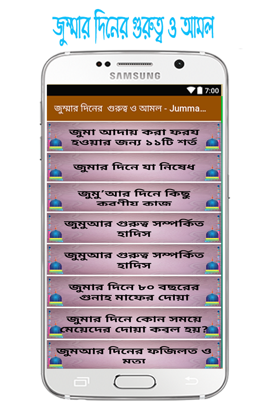 মুসলমানদের জন্য জুম্মার দিন অতি গুরুত্ব পূর্ণ দিন। এই দিন অনেক ধরনের ফজিলত আছে। আমরা এই অ্যাপে জুম্মার দিন সম্পর্কে অনেক ধরেনর গুরুত্ব পূর্ণ বিষয় তুলে ধরা হয়েছে।