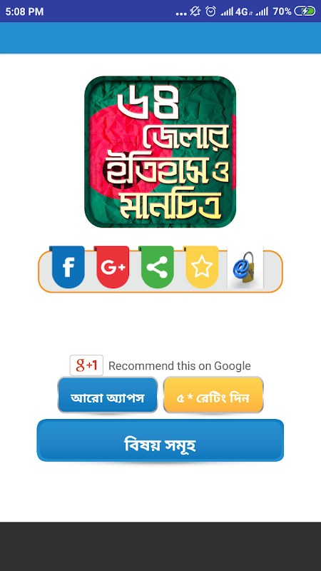 This app has discussing about 64 district and 8 division . I hopeful this app are helpful of college / university and and also geographic student because apps contain total history of bangladesh 64 district and geographic map .