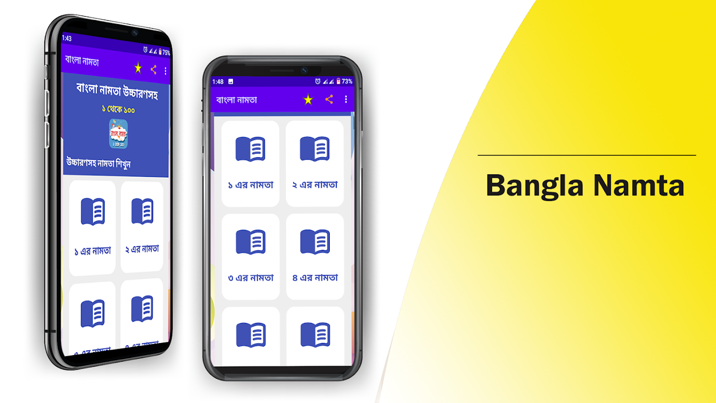 Forniamo il libro Namta in bengalese che è Namta bangla e include impianto audio con app bangla namta che si chiama audio bangla namta boi. La nostra educazione di base durante l'infanzia con shishu shikkha boi e dharapat bangla. Ma l'educazione matematica di base inizia con il libro bangla namta. È impara guner namta per livelong. È necessario conoscere bangla namta banan per qualsiasi dato numerico. Namta boi ci aiuta a memorizzare tramite l'app Namta con audio.