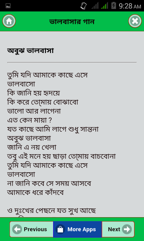 গানের সাথে মানুষের সম্পর্ক মনের এবং প্রাণের। মানুষ তাঁর সুখ, দুঃখ, আনন্দ বেদনা সবই প্রকাশ করে গানের মাধ্যমে। ভালোবাসা মানুষের জীবনের অন্যতম অনুভুতির না যা সুধু একজন সত্যিকারের প্রেমিকই বুঝতে পারে। ভালোবাসার গান অ্যাপ এ আমরা এমন কিছু আবেগময় গা দিয়েছি যা শুনলে আপনি ভালোবাসার এক অন্য জগতে চলে যাবেন। আমরা সকলেই জানি যে মানুষ তাঁর সকল আবেগ এবং অনুভূতি গানের মাধ্যমে প্রকাশ করে থাকে আর এই প্রেমের গান এবং ভাবের গানগুলো আপনার ভালোবাসার সাথে এক নতুন মাত্রা যোগ করে দিবে। গান ছাড়া ভালোবাসার অনুভূতি প্রকাশ করা এক প্রকার অসম্বব তাই দেশের সকল প্রেমিকের কথা চিন্তা করেই আমরা এই ভালোবাসার গান সঙ্কলন তৈরি করেছি।