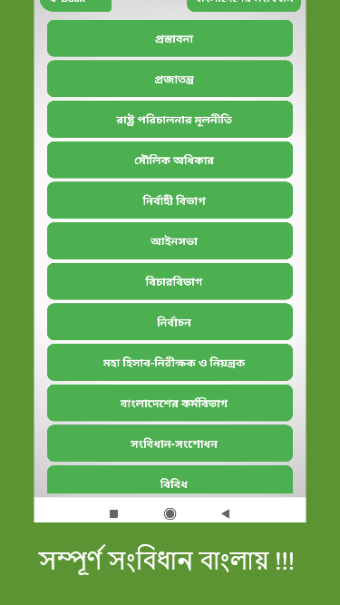 বাংলাদেশের সংবিধান স্বাধীন ও সার্বভৌম বাংলাদেশের সর্বোচ্চ আইন। বিস্তারিত অ্যাপে।