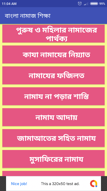 যেকোনো ফরয , ওয়াজিব, সুন্নত ও নফল নামাজের নিয়ম ও নামাজের নিয়ত এবং যেকোনো ফরজ গোসল এর নিয়ম সহ যেকোনো বিষয় জানতে আমাদের এই অ্যাপটি ডাউন লোড করুন কারন এটি একটি সেরা নামাজ শিক্ষা সূরা বাংলা অ্যাপ।