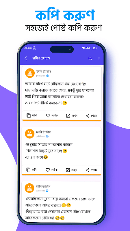সব নতুন নতুন ভাইরাল হাসির ও মজার স্ট্যাটাস পোষ্ট নিয়ে আমাদের এই বাংলা ফানি স্ট্যাটাস আপটি আপটি। এই অ্যাপটিতে রয়েছে বাছাইকৃত ফানি স্ট্যাটাস ও