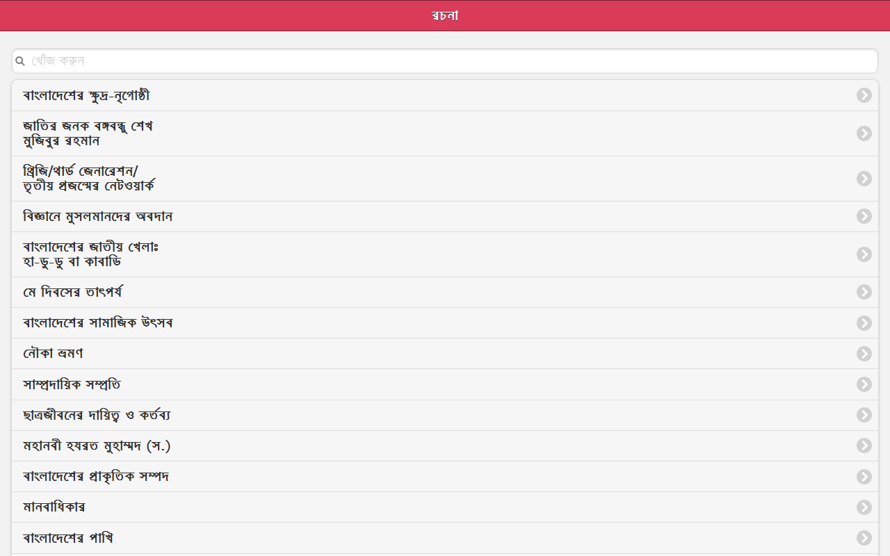 যারা বাংলায় রচনা খুঁজছেন তাদের জন্য এই এপ। এস এস সি কিংবা এইচ এস সি শিক্ষার্থীদের জন্য এই এপটি অত্যন্ত কার্যকরী। রচনা সংগ্রহ এপটিতে ১০০ টির বেশি রচনা পাবেন এবং রয়েছে একটি শক্তিশালী সার্চ বার। যেখানে সার্চ করে সহজেই আপনি আপনার প্রয়োজনীয় বাংলা রচনা খুজে পাবেন।
