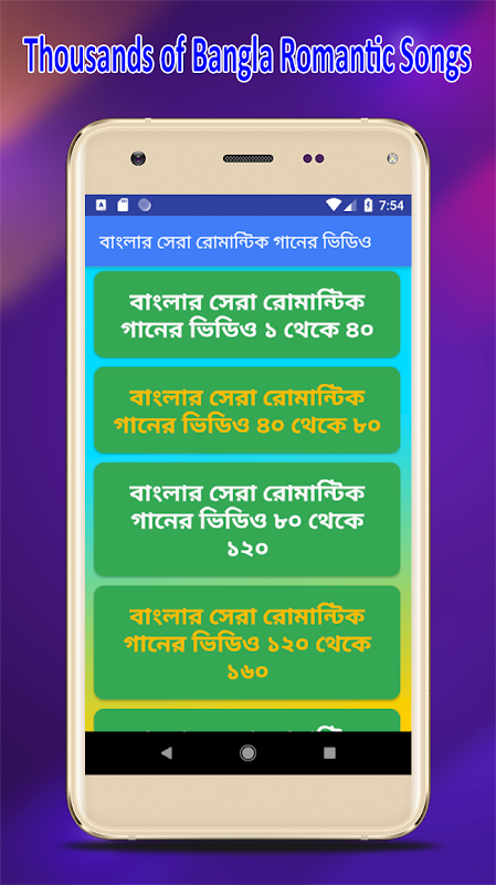 বাংলার সেরা রোমান্টিক গানের ভিডিও অ্যাপটিতে রয়েছে শত শত সেরা রোমান্টিক ভিডিও গানের সংগ্রহ।