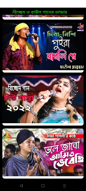 আমাদের অ্যাপে গ্রাম বাংলার জনপ্রিয় বিচ্ছেদ ও বাউল গানের ভিডিও উপভোগ করতে পারবেন।