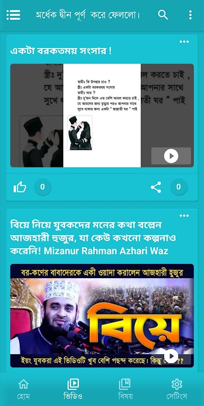 "বিয়ে দ্বীনের অর্ধেক" অ্যাপটিতে বিভিন্ন ইউটিউবার ভাইদের ইসলামিক ভিডিও ও বিভিন্ন করার জন্য আমাদের এই অ্যাপ এ আমরা সংযুক্ত করেছি স্বার্থে আমাদের এই এই সম্পূর্ন বিজ্ঞাপন স্বার্থে আমাদের এই অ্যাপ সম্পূর্ন বিজ্ঞাপন মুক্ত. শুধু মাত্র আল্লাহর জন্য আল্লাহর সন্তুষ্টির জন্য ইসলামের সৌন্দর্য কে তুলে দরার জন্য রাত দিন কাজ করে যাচ্ছি.