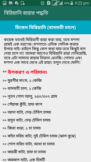 আর নয় বিরিয়ানি রান্নার চিন্তা এই অ্যাপস টি ইনস্টল করুন এবং রান্না করে ফেলুন সুস্বাদু বিরিয়ানি।।