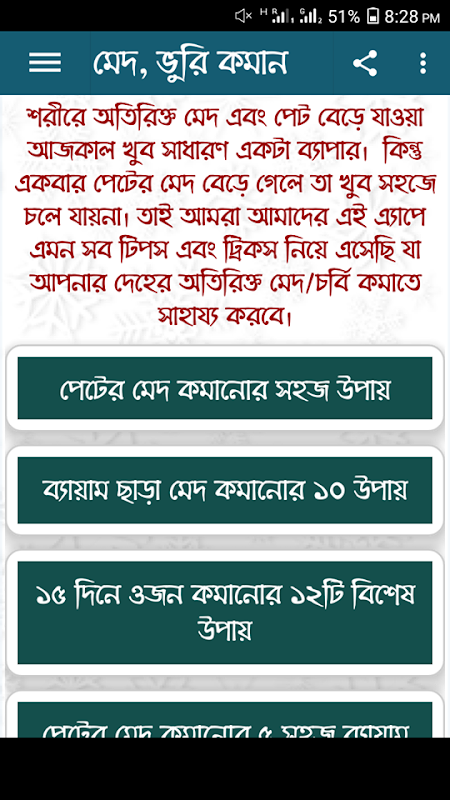 Informazioni sull'APK মেদ ও ভুরি কমানোর সহজ উপায় - Bangla Diet Chart