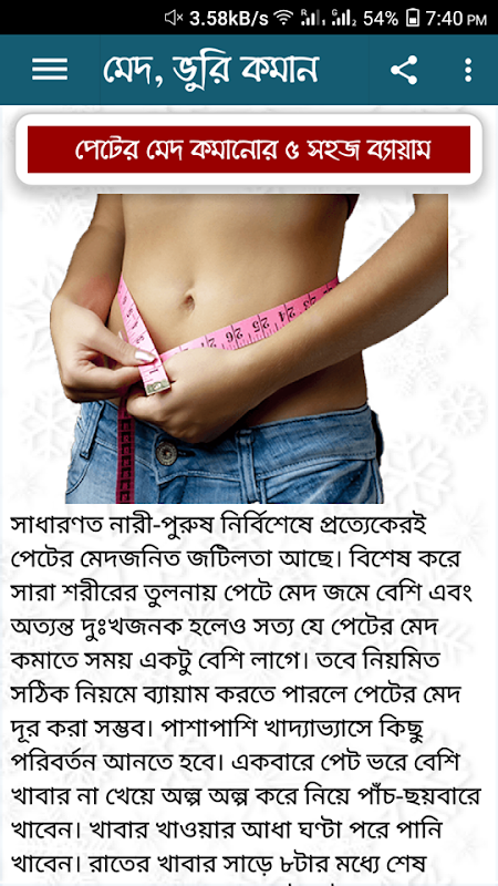 শরীরে অতিরিক্ত মেদ এবং পেট বেড়ে যাওয়া আজকাল খুব সাধারণ একটা ব্যাপার। কিন্তু একবার পেটের মেদ বেড়ে গেলে তা খুব সহজে চলে যায়না। তাই আমরা আমাদের এই এ্যাপে এমন সব টিপস এবং ট্রিকস নিয়ে এসেছি যা আপনার দেহের অতিরিক্ত মেদ/চর্বি কমাতে সাহায্য করবে।