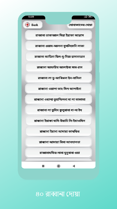 Monajat er dua যা পবিত্র কোরআন ও মোনাজাতের বইতে উল্লেখ আছে তার মধ্য থেকে রাব্বানা দিয়ে ৪০ টি Monajat er dua বাছাই করে, প্রতিটি দোয়া অডিও সহ সকল মোনাজাত বাংলা উচ্চারণ, অর্থ ও ফযিলত দিয়ে তৈরি করা হয়েছে এই App Monajat.