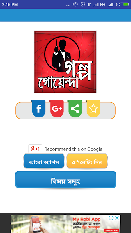 আমাদের এই একটি এ্যাপ থেকেই ফেলুদা সমগ্র, ব্যোমকেশ বক্সী সমগ্র, মামুদ রান সিরিজ, প্রফেসর শঙ্কু সমগ্র, তিন গোয়েন্দা সমগ্র, শার্লক হোমস সমগ্র এর সেরা সেরা গল্প গুলো পাওয়া যাবে। তাই দেরি না করে এ্যাপটি এখই ডাউনলোড করুন,