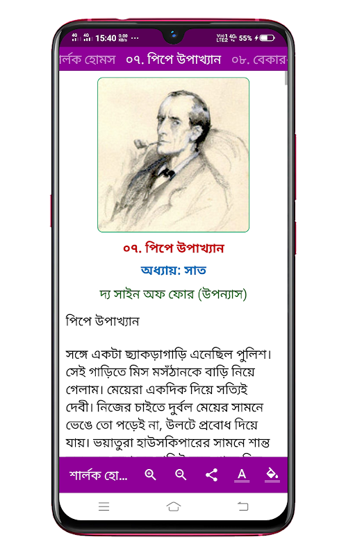 শার্লক হোমস সমগ্র - অ্যাপটিতে নিম্নলিখিত বিষয়গুলি রয়েছে।