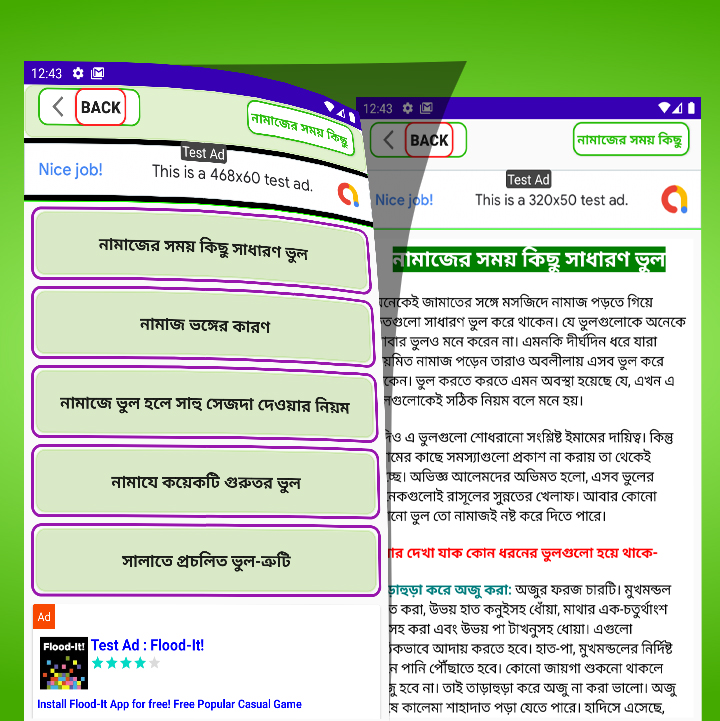 নামাজের দাড়ানোর নিয়ম কেমন তা চিত্রসহ নামাজ শিক্ষা এপ থেকে যানতে পারবেন। নামাজের ফযিলত অনেক, নামায হলো বেহেস্তের চাবিকাঠি। অজু ও পবিত্রতা আমাদের এই আপে খুব সুন্দর ভাবে দেওয়া আছে। সাথেতো, তাশাহুদ / আত্তাহিয়াতু, দোয়া এ মাসুরা, দোয়া কুনুত, দুরূদ শরীফ পাবেন এইখানে। নামায না পড়ার শাস্তি অনেক আবার ভুল ভাবে নামাজ আদায় করলেও অনেক শাস্তি। তাই আমরা এই অ্যাপে শিখাবো, নামায যেভাবে আদায় করবেন, নামাযের ওয়াজিব সমূহ, নামাজের সুন্নাতে মুয়াক্কাদা, নামাযের সুন্নত সমূহ, নামাযের মোস্তাহাব সমূহ, নামাযের মাকরূহাত।