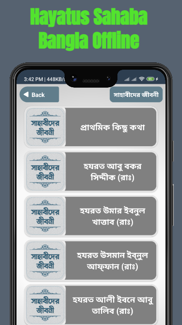Questa app è un'app per lo stile di vita islamico. Leggiamo hayatus sahaba bangla kitab per mantenere la nostra vita con il Corano e la Sunnah. Questa app è realizzata con hayatus sahaba bangla offline che fornisce la vita di sahaba. Il nostro nome sahabider bangla e mohila sahabider è molto attraente e molto significativo. Quindi, abbiamo chiamato nostro figlio con il nome sahabider bangla da sahabider namer talika.