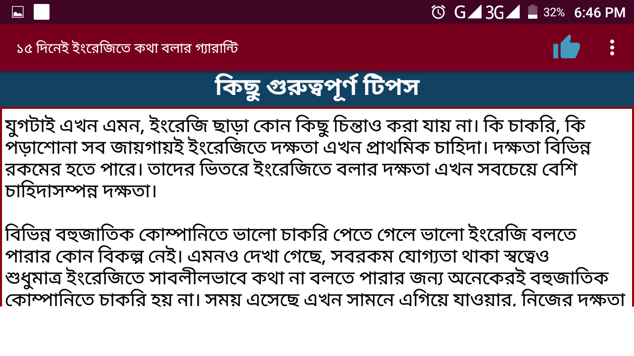 মাএ 15 দিনেই ইংরেজিতে কথা বলতে চান তাহলে প্রত্যেকটি ক্লাসে 1 দিন করে সময় দিবেন ।আর যাদের সরন শক্তি কম বা একটু বেশি দুর্বল তাদের সময় বেশি লাগবে তাই আপনারা একটু বেশি সময় দিন । টেনশনের কোন কারন নেই ক্লাস গুলো খুবই সহজ ।ক্লাস ৪-৫ এর ছাত্র হলেও পারবে।