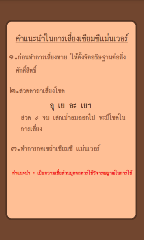 - คำแนะนำเพื่อให้ใช้งานอย่างถูกวิธีการเสี่ยงทาย