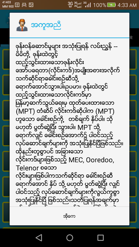 For all the operator services in Myanmar with one application.