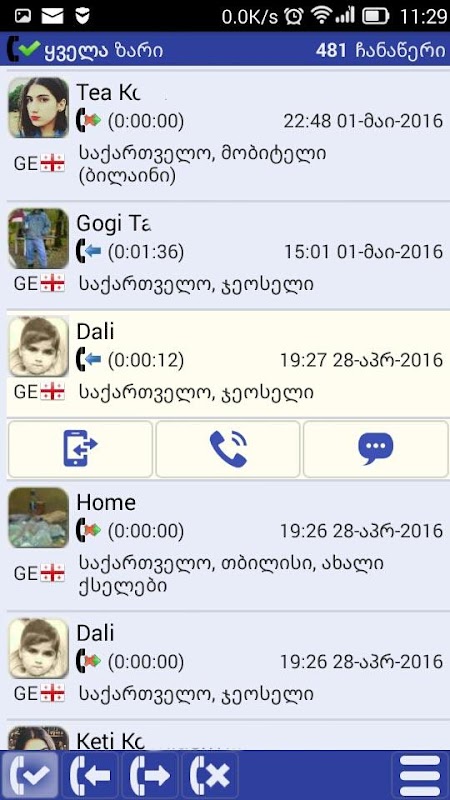 ზარების ისტორია, ქვეყნების და ქალაქების სატელეფონო კოდები, საქართველოს ოპერატორების სრული სია და მათი ინდექსაცია. ზარების და ურთიერთკავშირის ექსპორტი Excel-ის ფორმატში.