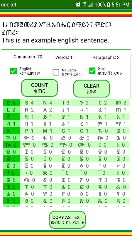 • 2 Schermata ሆሄያት መቁጠርያ: The Character Counter