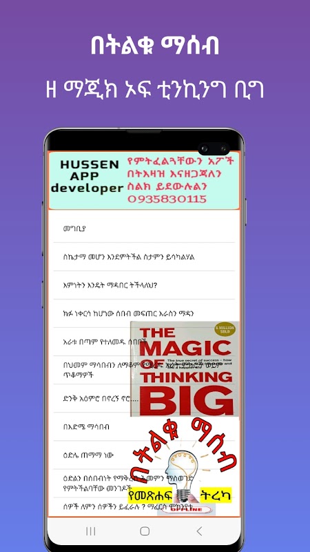 Questa applicazione contiene The Magic of Thinking Big, un meraviglioso libro in amarico in forma narrativa che milioni di persone in tutto il mondo hanno testimoniato ha migliorato le loro vite.