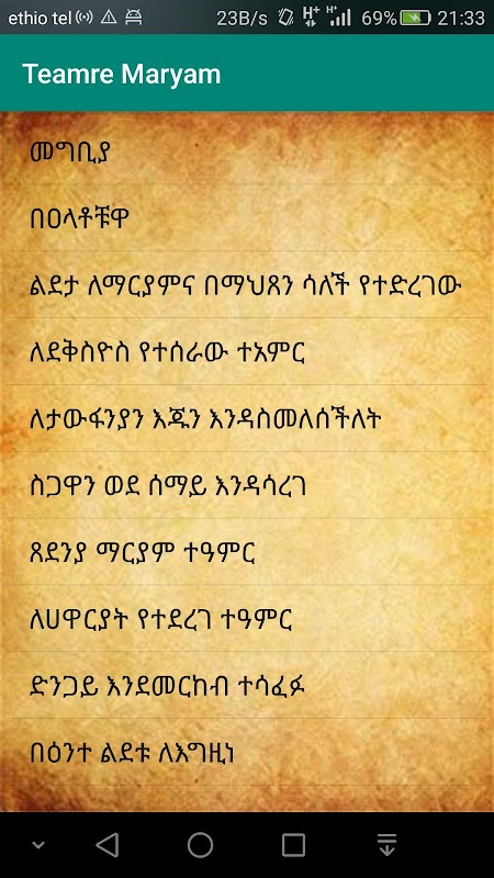 Un'app per libri in amarico che racconta cose miracolose che la vergine maria ha fatto.