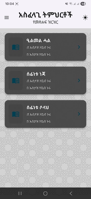 📚 Impara l'Islam in amarico con questa app unica che contiene tre libri islamici essenziali con audio tafsir (spiegazioni) completi del noto studioso islamico etiope, Ustaz Habib Nuru.