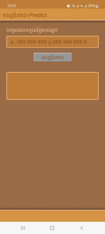 តាមរយៈកម្មវិធីនេះ លោកអ្នកអាចធ្វើការមើលហុងស៑ុយ លេខទូរស័ព្ទ, ផ្លាកលេខរថយន្ត, ឈ្មោះ, ថ្ងៃកំណើត, គូស្រករ ឬ ការទស្សន៍ទាយផ្សេងៗ