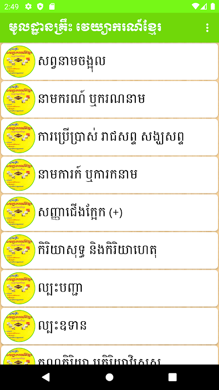 • 2 Schermata មូលដ្ឋានគ្រឹះវេយ្យាករណ៍ខ្មែរ