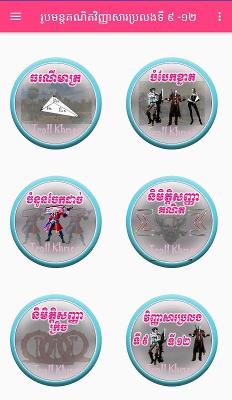 - ក្នុង កម្មវិធី មាន រូប ម ន្ដ និង មេរៀន ជាច្រើន ដូចជា ៖