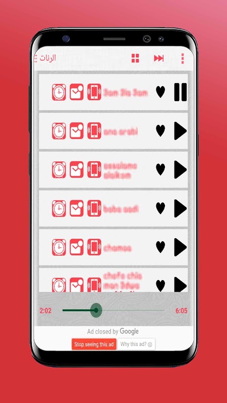 اليكم اسفله البعض من الاغاني التي يحتوي عليها التطبيق :