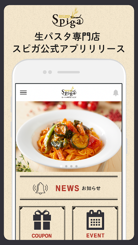 「ニューオークボ」の生パスタが楽しめるスピガ公式アプリ 1.57.3