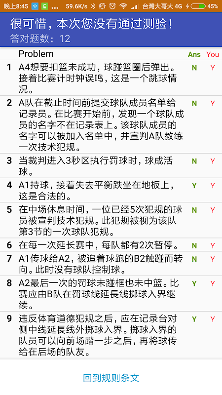 Questa applicazione contiene la versione inglese di regole di basket e l'interpretazione normativa, fornendo più di 500 esercizi e domande relative al film. Arbitro di basket che desiderano entrare nelle fila di amici sarà uno strumento di apprendimento molto utile.