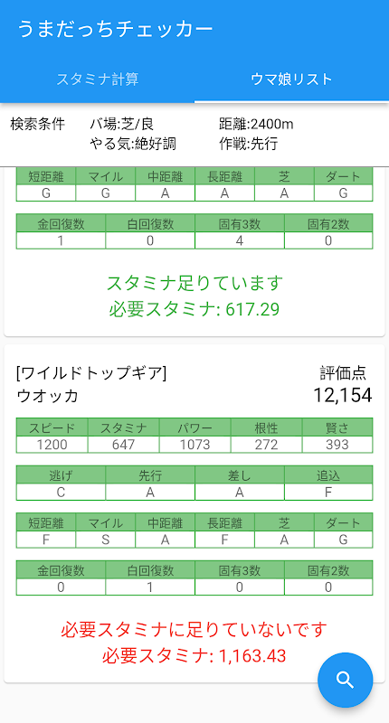うまだっちチェッカー - ウマ娘必要スタミナチェッカー - 1.0.5